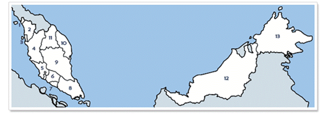 Can you name the States of Malaysia according to the numbers on this map?
